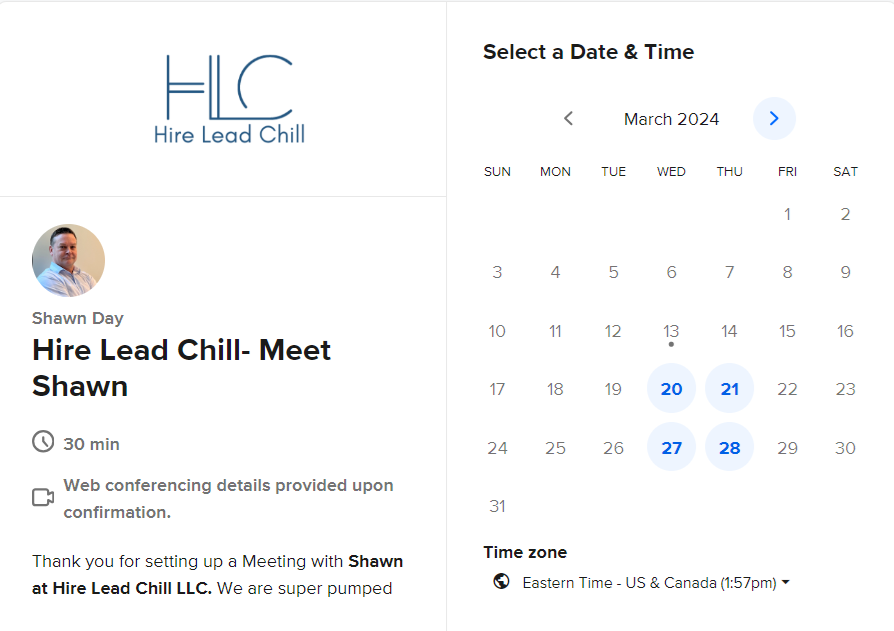 Hire Lead Chill is a revolutionary recruiting system. You can use our platform that has workflows, automations, and screening questions all setup for you. You can also do NOTHING and my team does everything. You'll never need to do a thing but interview amazing candidates that we find and screen ...Read more
